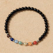 Fabriqué avec des perles fines représentant les 7 chakras, et des perles noires en Onyx, cet élégant bracelet est un accessoire idéal pour égayer vos tenues.